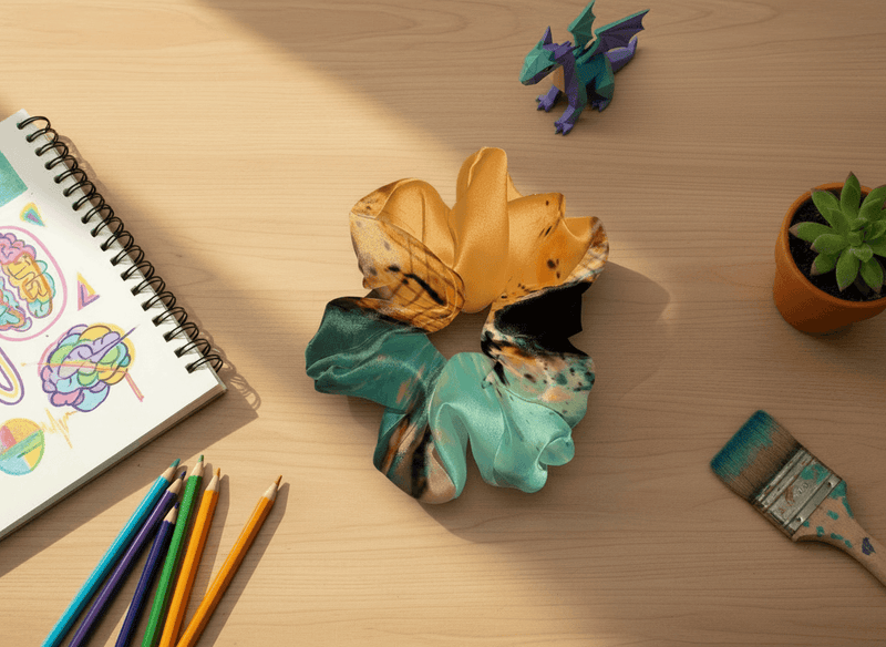 "I bought an amazing satin scrunchie with a beautiful pattern."